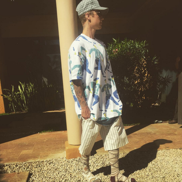 ▼小賈斯汀分享了他在海邊的愉快照片,可以注意到他上半身和褲子都穿著不同的圖騰,通常人們確實不會這樣搭配。