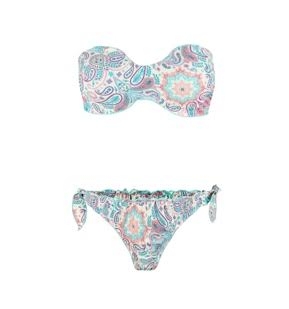 印花設計展現了濃郁的夏日風情,例如民族圖案、花卉圖案和熱帶塗鴉設計。兩面式比基尼,側邊開口和編織裝飾的款式設計,配以荷花邊、皺褶和彩色串珠等新奇的裝飾。