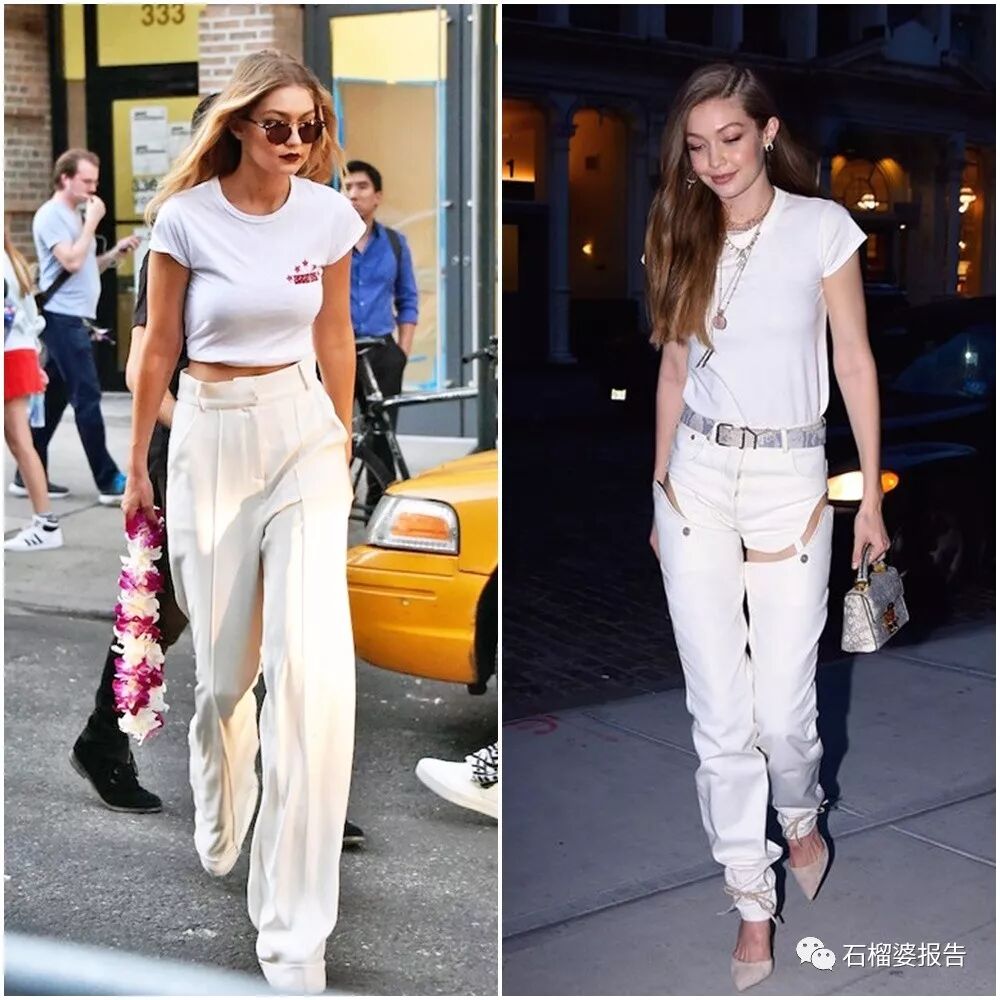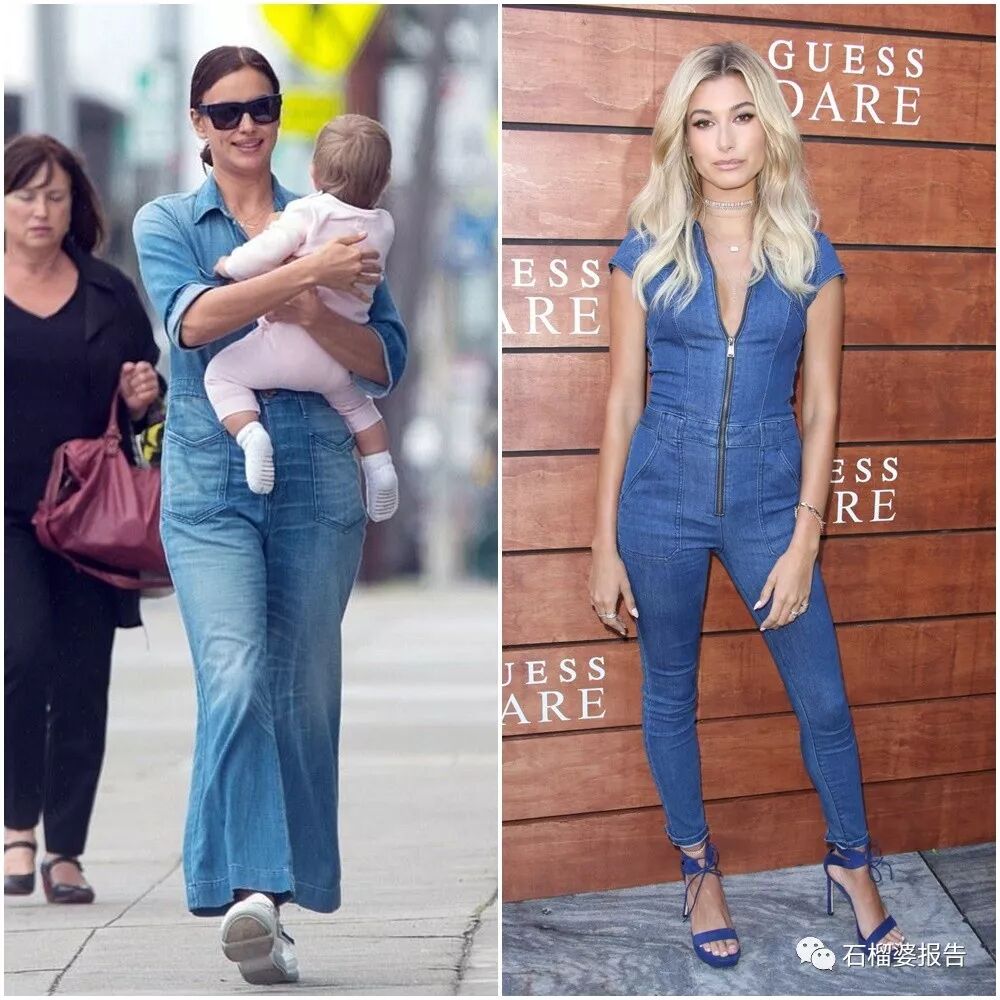 很多連身褲的腰線不明顯。Irina Shayk 和 Hailey Baldwin 兩位大長腿模特穿起來,不管是寬鬆款還是緊身褲,感覺腿長都是從褲襠那裡開始的。