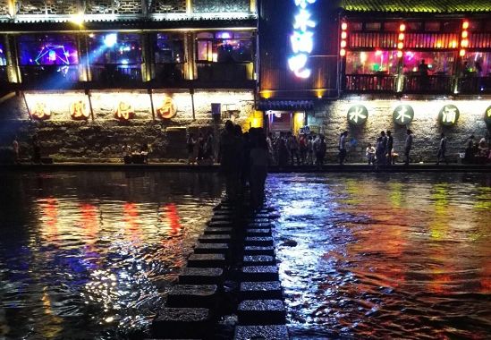 不論是坐在烏篷船上,看古色古香的吊腳樓倒映沱江水中,影影綽綽倒退著蕩開圈圈漣漪。還是在吊腳樓裡憑欄看沱江緩緩,青山依依,時光彷彿從沈從文筆下的《邊城》悠然而來。