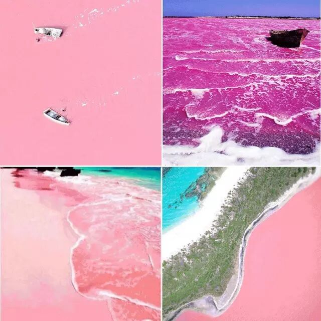 而科學家們除了為這份奇景傾倒外,更多的是想要探尋粉色魔法背後的科學依據。原來,嗜鹽藻類是讓湖水變色的一個原因。當藻類大量繁殖時,就會釋放出大量的β—胡蘿蔔,這便是湖水最好的染色劑。而圍繞在湖水旁茂密的白千層和桉樹樹林,更顯得如入仙境,似幻似真。