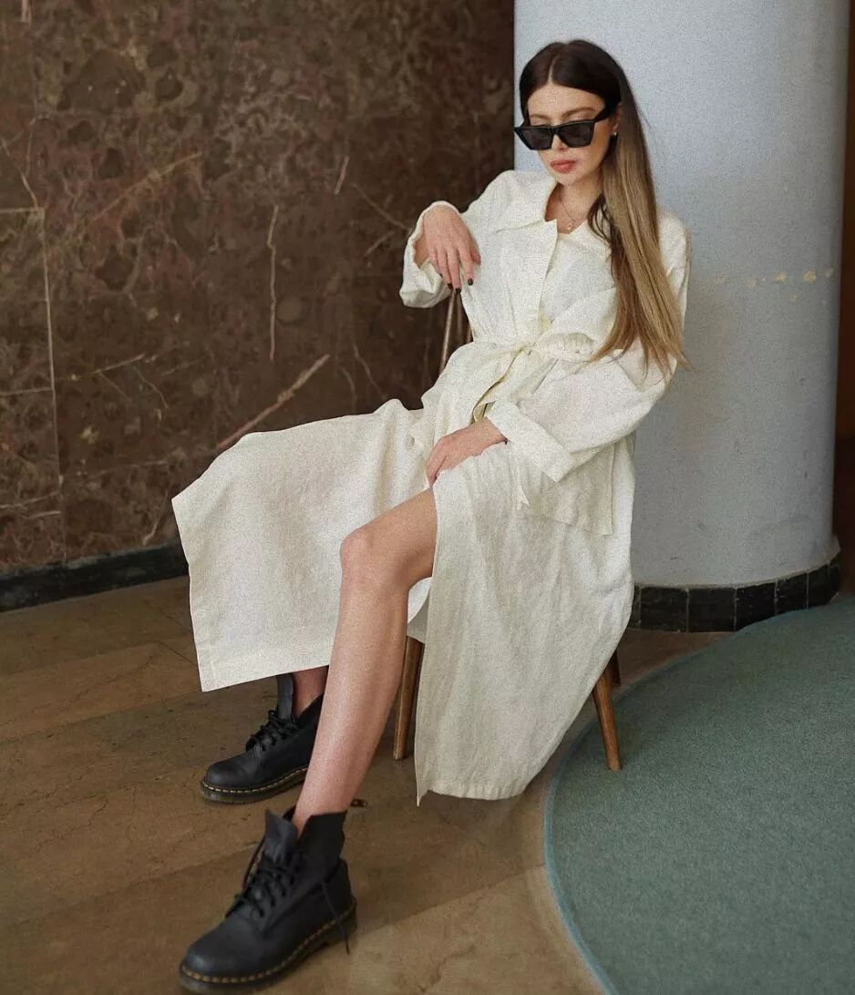 是一位超級愛復古單品的姐姐,在配飾上特別用心~復古黑墨鏡、花襯衫,她穿上酷酷的感覺。裙裝有一些,也都是素素的比較好看,也一定要收腰!襯衫裙,她搭配了馬丁靴,很有少女感哦!( 原來大胸部也有煩惱?!細數「大胸妹踩雷單品 TOP 4 」 穿不好視覺立馬胖 5 kg!)