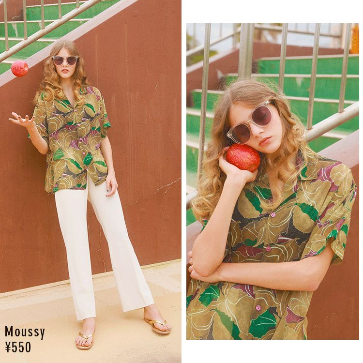 如果覺得前面兩款太少女,那就選短袖襯衫吧。最近討論度很高的周雨彤和宋妍霏,走酷 girl 路線的時候都不約而同的用短袖襯衫搭配卡其長褲。也有很多人喜歡疊穿,最簡單就是內搭一件白 T,白 T 的袖長可以選比短袖襯衫稍長的,這樣露出來會增加層次感。Moussy 這件印花我超愛了,復古之餘還很度假,配色也超特別。也可以搭配性感些的短上衣或背心,再來點撞色。想隨性休閒一點,就用下擺打個結。( 穿襯衫這點超重要:最容易忽略的 7 個穿搭細節!白襯衫必搭「這色」胸罩)