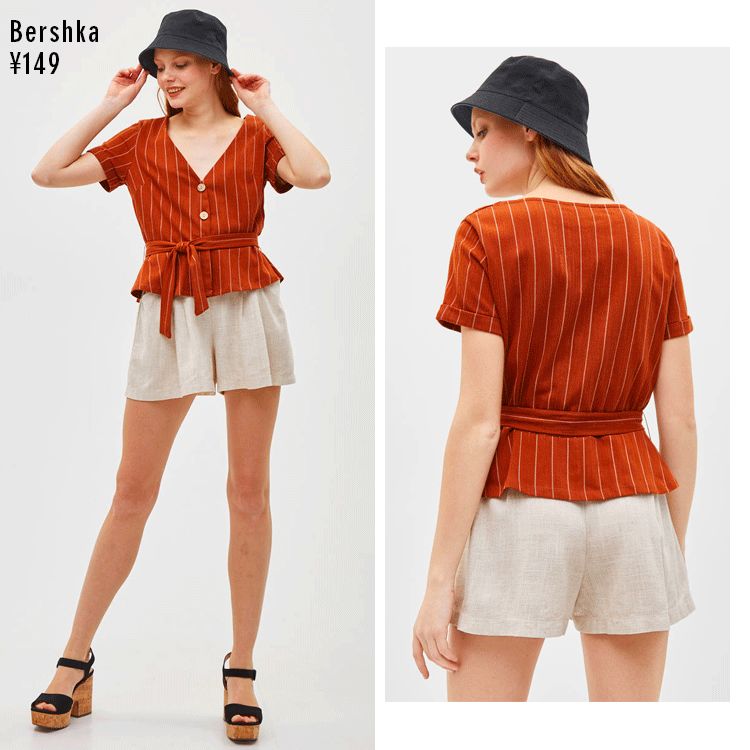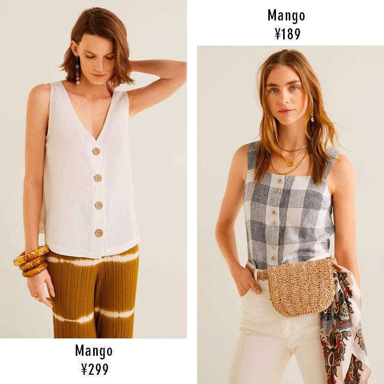 V 領上衣可以說是夏季的定番單品,清涼之餘,顯瘦力也是無話可說。今年我比較推薦選深一點的 V 領,然後搭配上今年流行的絲巾,長飄帶型會更輕盈一些。左邊的黃格紋上衣是今年 MANGO 我很喜歡的一件。棕紅色條紋加上腰間的綁帶有種民族風情。 O!Oi 的 V 領小上衣更適合少女掛的,波點、荷葉邊還有蝴蝶結,少女喜歡的它都有。( 國民初戀靠這招顯瘦:「國民初戀」變胖了?秀智遮肉穿搭 3 撇步 讓你輕鬆視覺上減 3 KG!)
