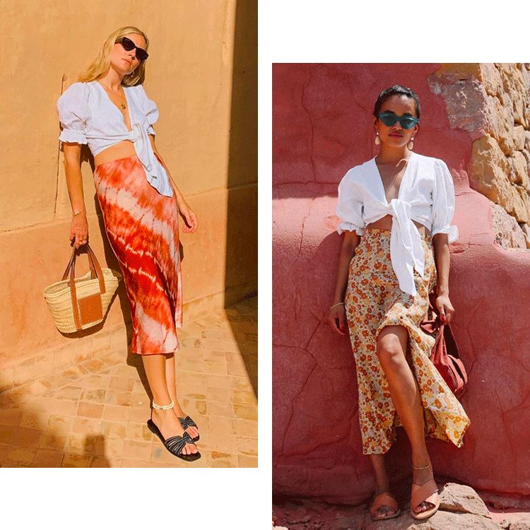 喜歡 Emoda 這件的袖子,開叉設計即使是七分袖也感覺很清涼。幾乎每個度假風品牌都有出綁帶設計的短上衣,配上印花半裙或者是短褲,穿去度假特別合適。長裙可以選擇側邊有開衩的。度假仙女牌 Faithfull the brand 這件白色綁帶上衣最近在博主圈真的好火。Posse 這件的綁帶還能繞到身後繫起來,秒變圍裹式上衣。( 這些單品必收:春暖花開,印花單品該拿出來準備了吧!)