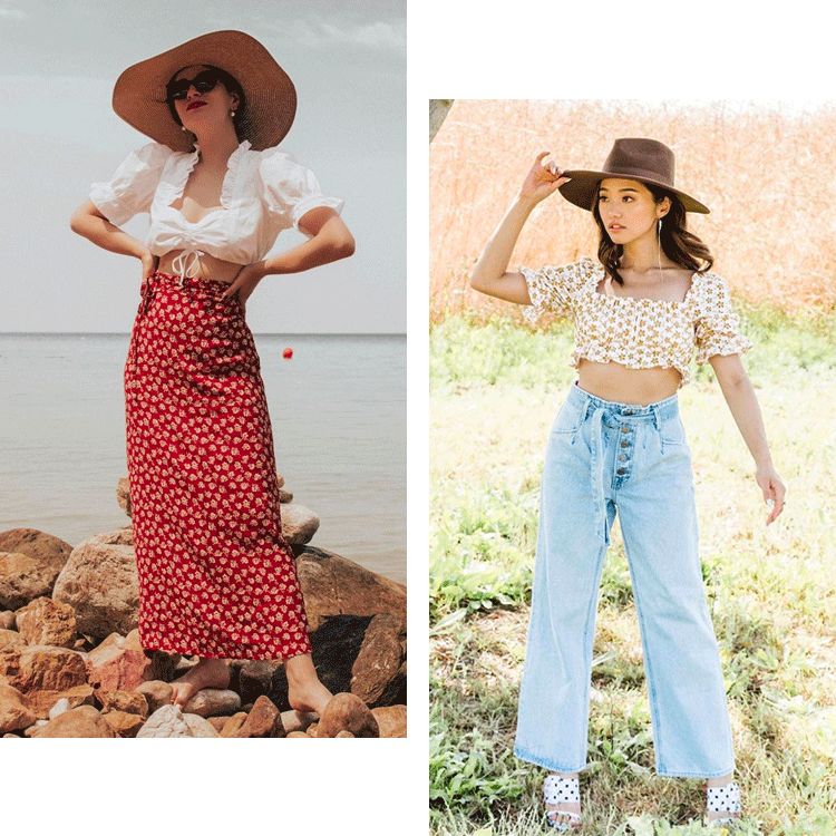 韓國品牌 Raive 這件的下擺多了一圈荷葉邊,多了點可愛之餘還能遮住小肚肚。版型稍微寬鬆一點的話,記得把下擺塞進下裝裡哦。歐美博主還喜歡褶皺設計的緊身上衣,這樣配上泡泡袖會比較不容易顯壯。Tach Clothing 這件嫩粉色的碎花配上恰到好處精緻的褶皺,應該沒人能抵擋得了它的魅力吧,反正我好幾個喜歡的博主都是人手一件。( 女孩們快抄筆記:美醜就在一念間!這 4 個難搞的元素,這麼穿就對了!)