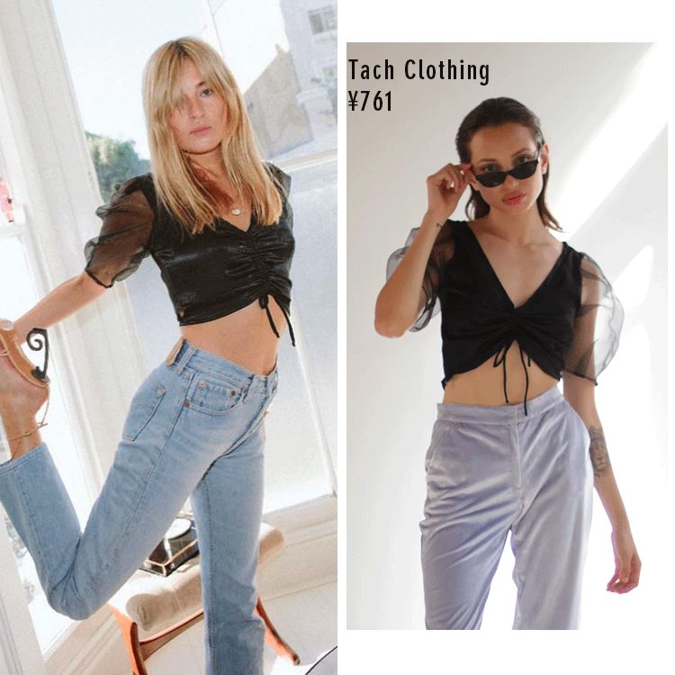 加入小翻領設計真是可愛又有點正式感,來自烏拉圭品牌 Tach Clothing。還有一件是絲質衣身拼接輕紗袖子,中間是抽繩的設計,上身真的超級俏皮。櫻花妹則會搭配高腰直筒褲來拉長身材比例,記得要選一雙帶跟的涼鞋哦。honey mi honey 這件好復古而且細節很精緻,屬於誰穿誰可愛的類型。( 涼鞋怎穿才好看:把涼鞋放入購物車前先看研讀這篇!三大腳型剖析怎麼穿才合腳!)