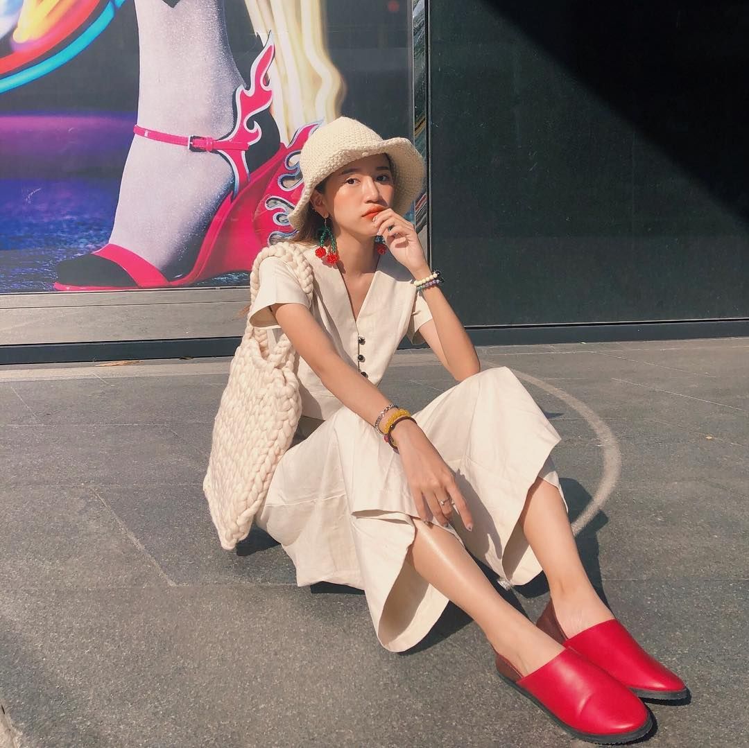 日常搭配愛走簡約路線,配色大多都選擇同一色系,想街頭一點就換上彩色的 slogan T。也會用 oversize 的白襯衫來打造氣質大人感。最愛拎有簡單印花的帆布包,輕便又能裝。文藝的漁夫帽是她的出遊必備單品,防曬和變換造型兩手抓。(人生不一定只有黑白灰,女孩們可以利用「亮點配色」點亮整體穿搭!)