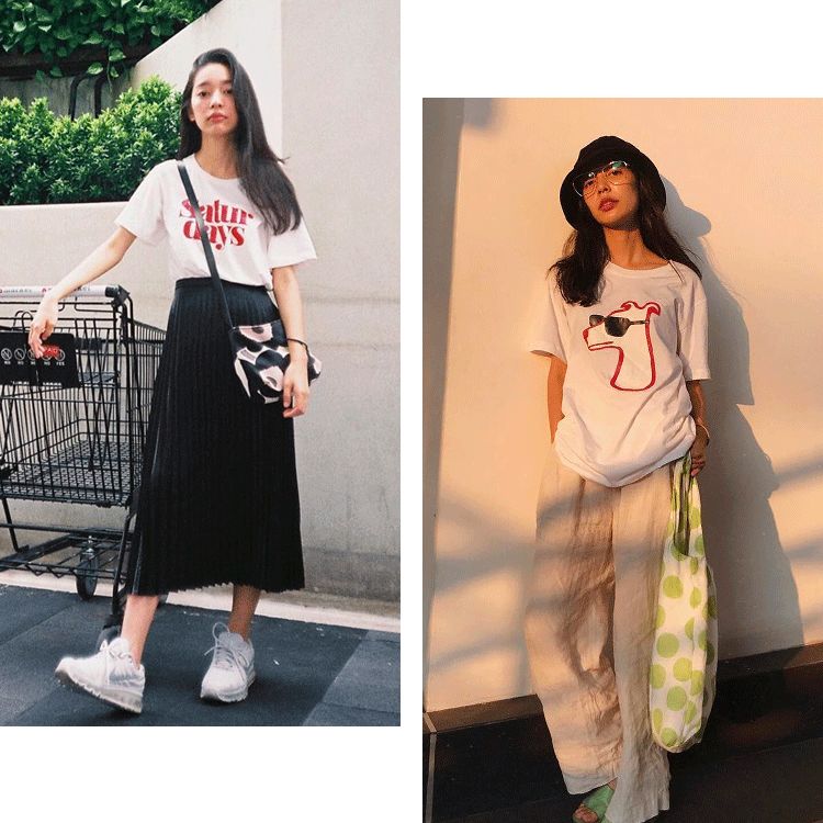 NAPASSANAN S. 之前分享過啦,我超喜歡她的。長相跟我們印像中的泰國女生不太一樣,自帶有一種昭和氣息的復古感,好迷人。碎花上衣會選擇飽和度高的顏色來加強復古感。換成嫩嫩的顏色又能立馬變身鄰家少女。下裝喜歡有異域風情的大印花,搭配白色 T 恤或者背心就很出彩。(編輯推薦:除了 T-shirt 外 ,夏季小短袖還有這 6 件必收!)