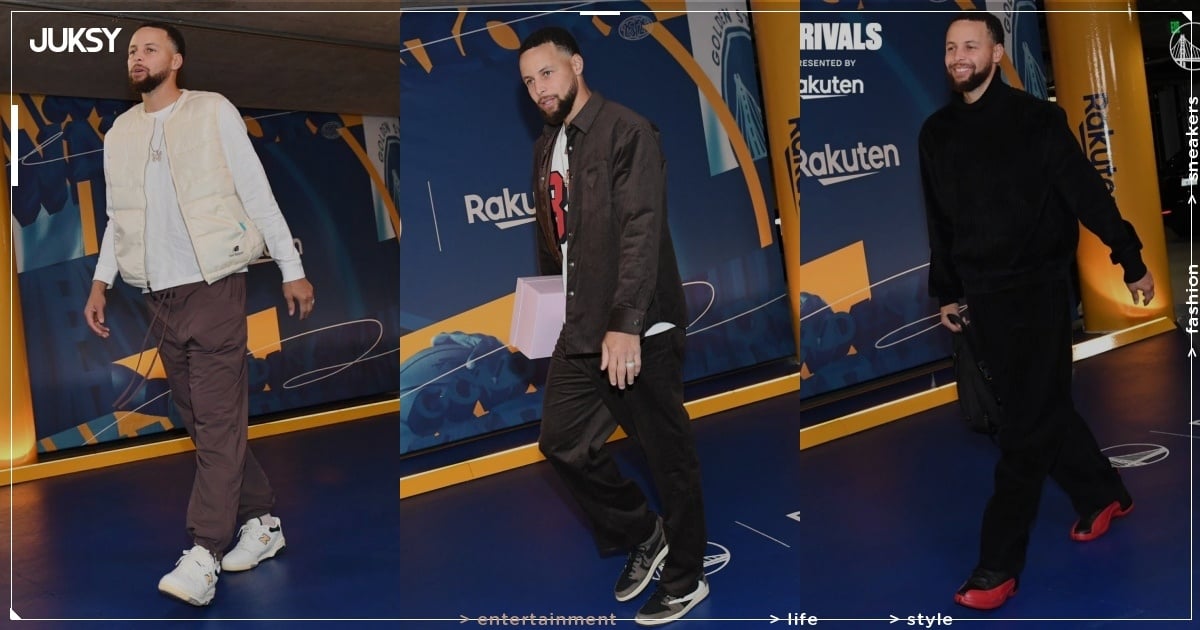 2025 年 11 月 30 日,雖然 Curry 因四頭肌受傷而休兵,但他依舊在勇士隊於主場迎戰鵜鶘隊的比賽隨隊出席,並穿著曾在 2021 年推出的 Aimé Leon Dore x New Balance P550 Basketball Oxfords 聯名鞋款現身球場,與上身白色長 Tee 搭配淺膚色背心的造型顏色相做呼應。