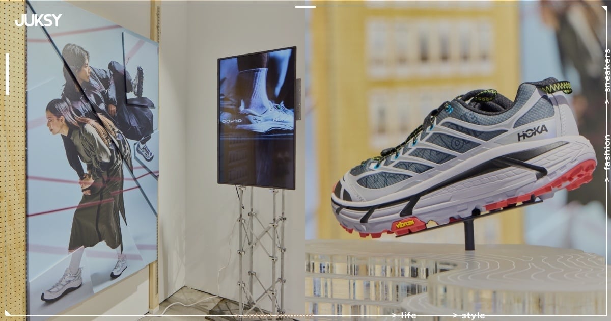 繼登上 2025 臺北時裝週 SS26 oqLiq 的時裝週主題開幕秀《INTERLACE|交錯場》後,HOKA 再度攜手台灣高端機能服飾品牌 oqLiq,聯合 WHITEROCK 於信義 A13 打造「HOKA × oqLiq 微型展覽會」。展覽以「移動、穿越與停駐之間」為主題,首度完整展示 HOKA Mafate Lifestyle 系列與其設計演進脈絡,邀請觀者在沉浸式空間中感受「交錯」的流動能量,體驗從越野山谷到時尚街頭的風格轉譯。