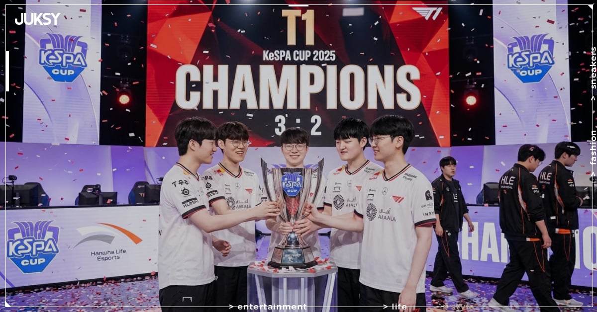 韓國電子競技協會(KeSPA)舉辦的 KeSPA Cup 於 2025 年 12 月 14 日落幕,由 T1 與 HLE 上演終極對決。這場比賽格外引人注目,因為前 T1 三冠 AD Gumayusi 才剛轉會至 HLE,而去年離隊的上路 Zeus 也在 HLE 陣中,睽違兩年 ZOFGK 組合再度於盃賽總決賽聚首,只是這次變成 Zeus、Gumayusi 對抗 Faker、Oner 與 Keria。最終 T1 以 3:2 驚險擊敗 HLE,扛住差點被讓二追三的壓力,在最後一場大勝對手,創下隊史首次 KeSPA Cup 冠軍的最佳紀錄,同時抱走 6000 萬韓元獎金(約新台幣 125 萬)。新 AD Peyz 整個系列賽表現亮眼,第五場更用招牌角色婕莉打出統治級表現,順利拿下他在 T1 的第一個盃賽冠軍,並獲選為 KeSPA Cup 決賽 MVP,額外獲得 200 萬韓元獎金(約新台幣 4 萬 2)。